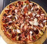 Pepperoni, sausage, hamburger, mushrooms, roasted peppers.